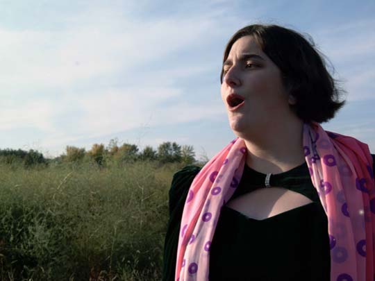 Structured by stories told within the context of a walk through a rolling orchard, Devotion mediates ideas about loss, its effect on memory, and memory’s effect on context. The stories come from several sources including Willa Cather’s novel The Song of the Lark; an obscure North American Indian legend about extinct mammals; a Tura Satana interview; various song lyrics; and original writing translated into visual events: a woman performing dressage, a man talking about the deaths of his wife and only daughter, and an enormous painting removed from the museum and returned to its starting point. |
