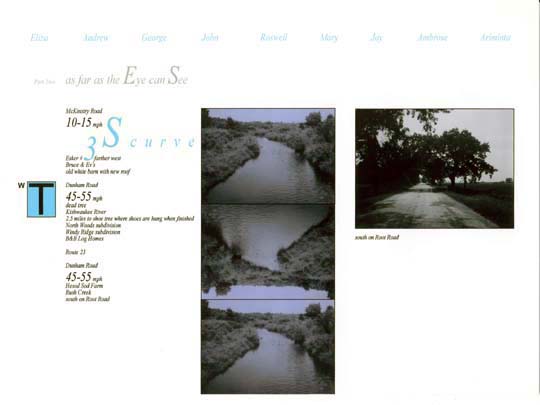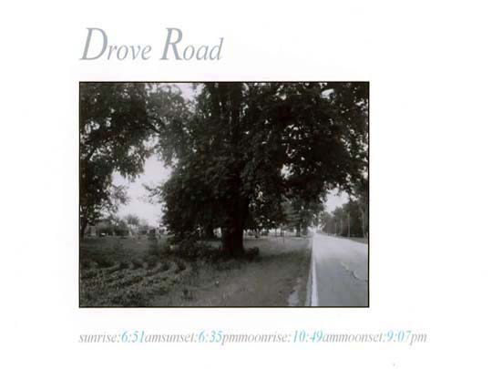 Drove Road took place in the countryside covering a 22-mile route. During the time that I made the performance, I came across the writing of British photographer and antiquarian Alfred Watkins who “rediscovered” ley lines in the British countryside around 1921 describing them in his book The Old Straight Track. Leys are alignments of ancient sites stretching across the landscape often most simply seen as an aligned placing of markers, or the line might be visible on the ground for all or part of its length by the remains of a track. Watkins surmised that these straight tracks were the remnants of prehistoric trading routes. He went on to associate the lines with various means of communication, the formation of boundaries, and with different mythological figures who functioned as guides to travelers on unknown paths. In doing my outdoor work, Drove Road and others, I came to understand the ley of a performed landscape as a collage, consisting of live events, human-generated and nature-made landmarks, and stopping places chosen or created with an intention towards a cohesive narrative. |